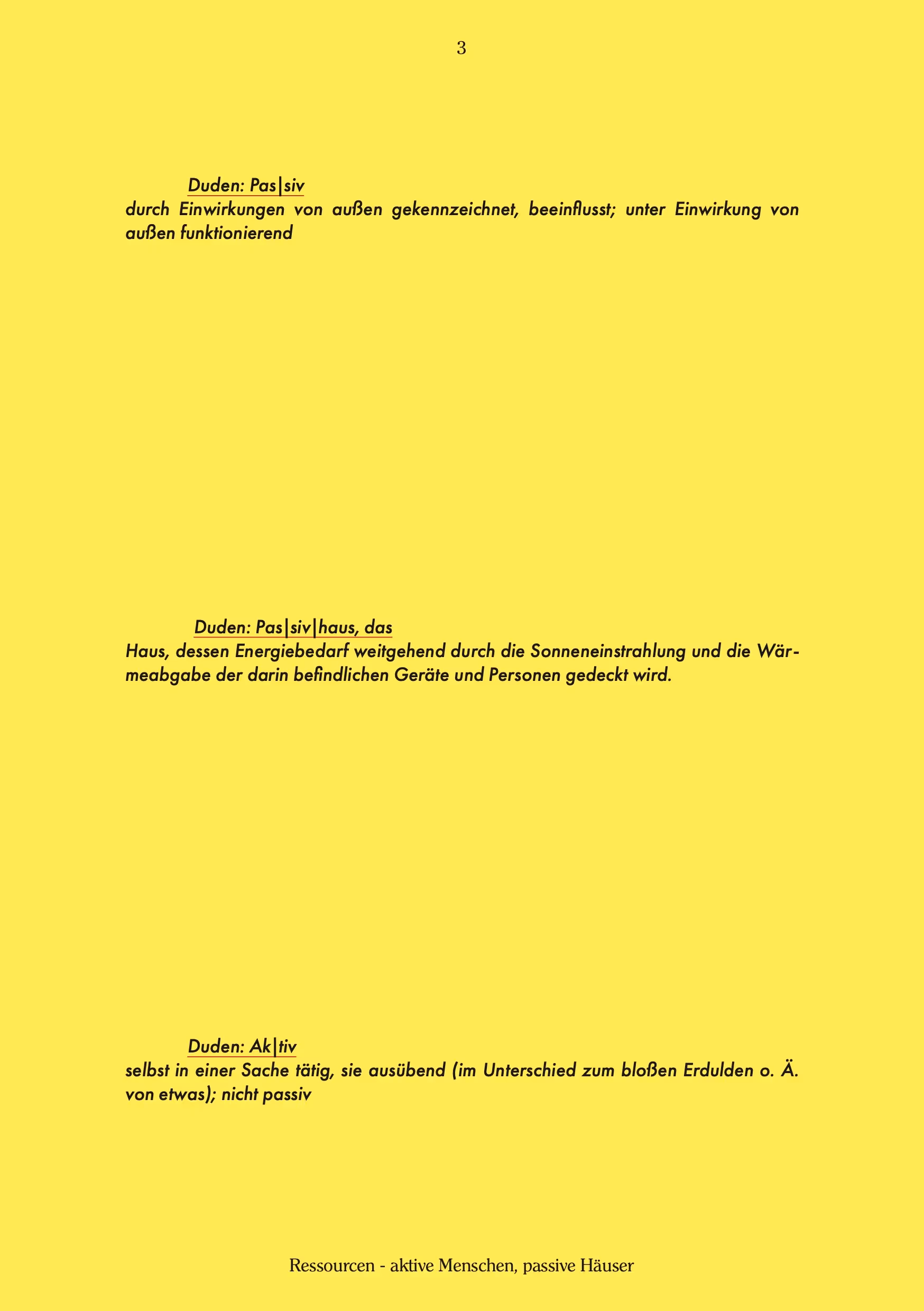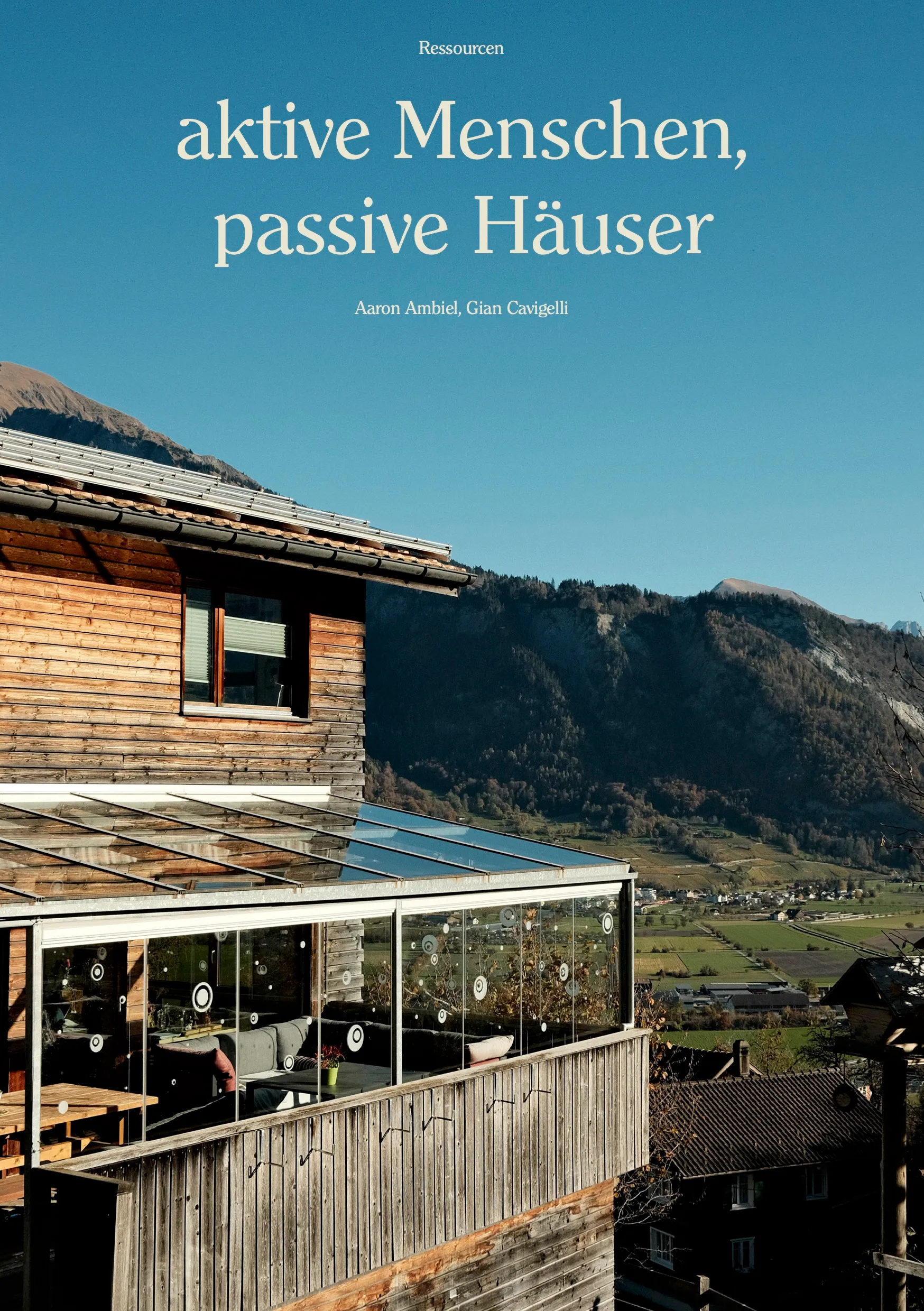 Das hier veröffentlichte Booklet der Gruppe trägt den Titel «aktive Menschen, passive Häuser». Anhand eines traditionell beheizten Holzofenhauses und eines Passivhauses wird der
