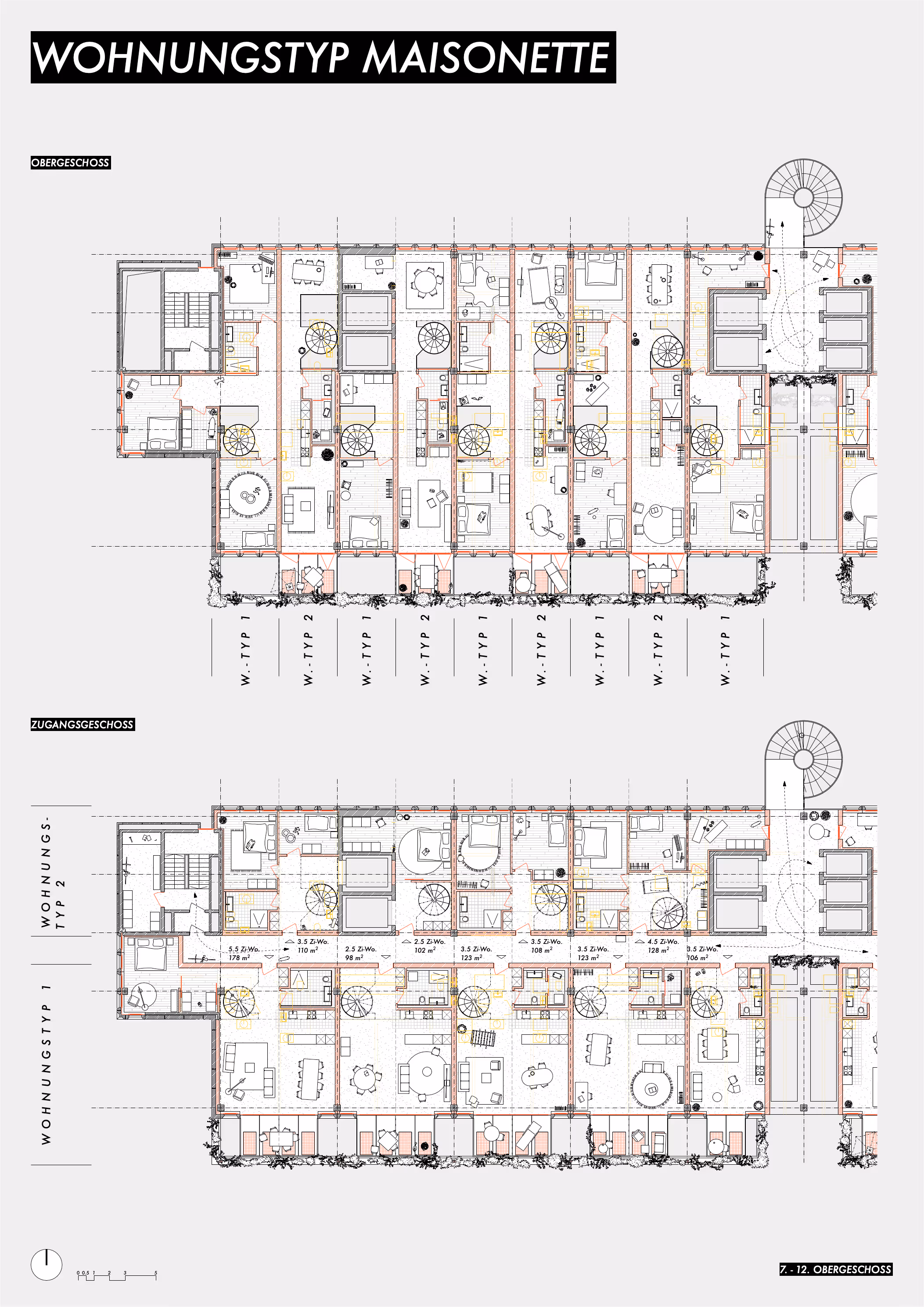 Das Hochhaus wird in Wohnraum überführt. Es wurden zwei Wohnungstypologien geplant, eingeschossige Laubengangwohnungen und zweigeschossige Maisonetten, welche unterschiedliche Eingriffstiefen im Bestand vornehmen. Wiederkehrende Gemeinschaftsräume an den Knoten der Erschliessung stärken die Nachbarschaft.